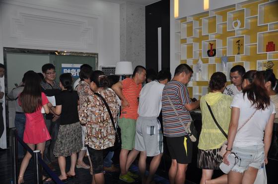 海容廣場LOFT公寓滿足投資增值、豪華辦公與休閑居住三重功能,面積小,投資少,總價低,以一層價格賺足兩層空間。認籌現(xiàn)場,客戶們有的沙盤邊看房,有的認真研究戶型模型,還有的向置業(yè)顧問咨詢房源的相關信息,氣氛十分活躍。