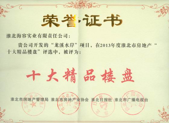 在2013年度被評(píng)為淮北房地產(chǎn)“十大精品樓盤”